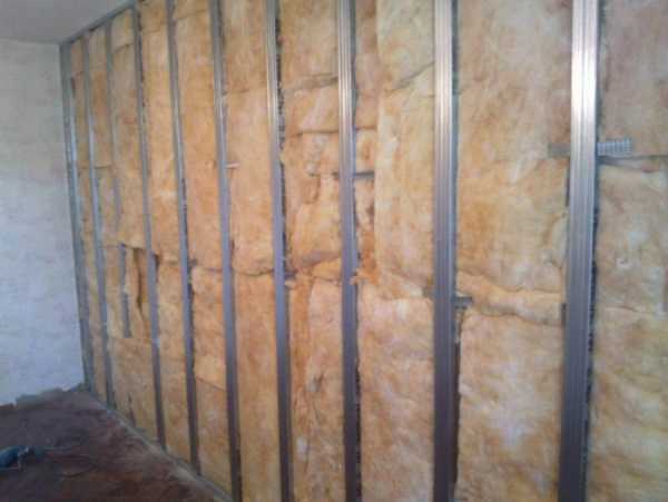 Если стоит задача повысить звукоизоляцию стены и одновременно утеплить ее, то наиболее эффективным способом ее решения является каркасный способ. В этом случае монтируется стальной каркас, на который крепятся листы гипсокартона с заполнением пространства между ним и стеной минераловатным утеплителем и тонкой звукоизолирующей прокладкой. При каркасной технологии утепления и звукоизоляции работы проводят в такой последовательности: