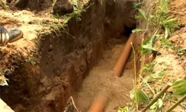 Труба укладывается на дно траншеи и засыпается песком