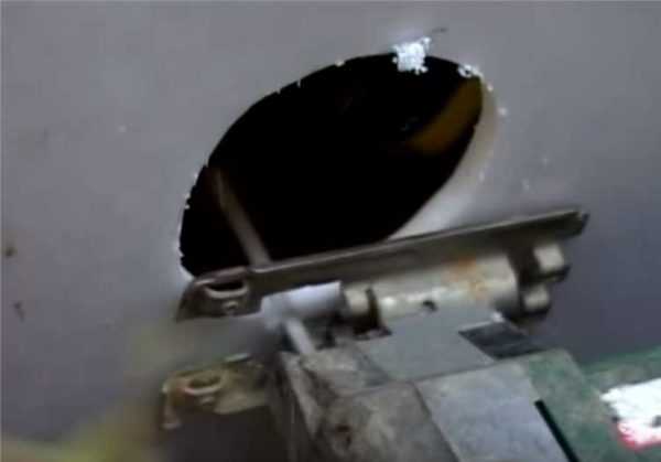 Отверстие промазывается силиконовым герметиком. В него вставляется отрезок трубы с раструбом на конце так, чтобы раст