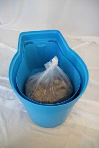- Более удобна утилизация и транспортировка отходов, если вместо одного ведра используются два разного диаметра, вставленные одно в другое.