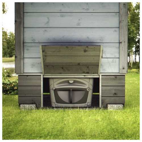 - Если модель торфяного туалета для дачи используется внутри дома, и отсутствие неприятного запаха более важно, чем собственно производство компоста, торф для засыпки отходов может быть заменен наполнителем для кошачьих туалетов.