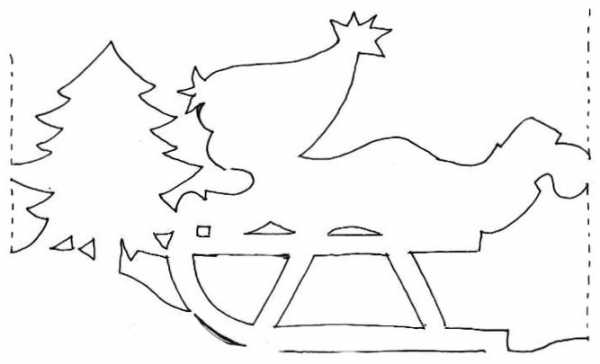 Еще одним сказочным новогодним героем является олень. С ним связана доставка волшебника Деда Мороза и Снегурочки. Предлагаем трафареты для вырезания оленей, повозки и саней.