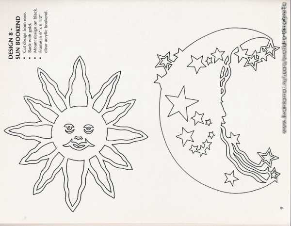 Вырежьте фигурки солнца и луны по трафаретам, дополните свою композицию.