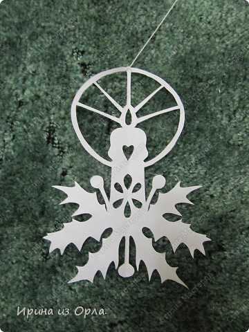 Предлагаем варианты вытынанок — свечей. Они могут быть самостоятельными или совмещенными с шарами, колокольчиками, ветвями и бантами.