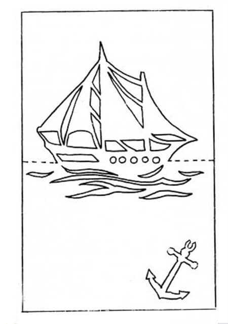 Вы можете попробовать нарисовать свой шаблон. Учитывайте плотность материала и остроту ножниц, чтобы «руль» корабля было удобно вырезать, и он получился аккуратным.