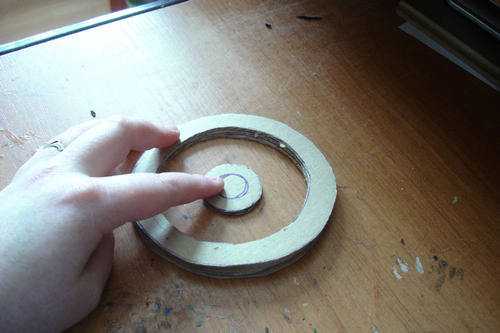 Теперь вырезаем внутренность картонных кругов, делая как бы ободки.