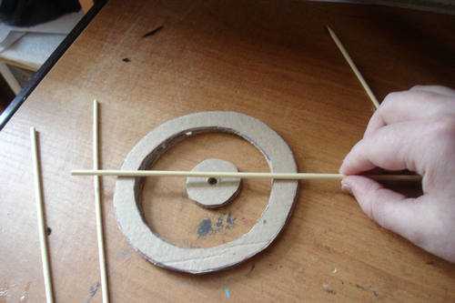 Теперь надо нарезать лучи-спицы из шпажек. Определяем размер, рассчитывая,