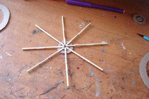 По такой же схеме можно делать колеса со спицами только в этом случае спицы не будут выходить за колесо.