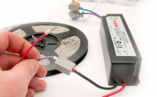 Как именно присоединяются провода? Проще и надежнее – припаять их, так же можно присоединить ленту к трансформатору коннектором.