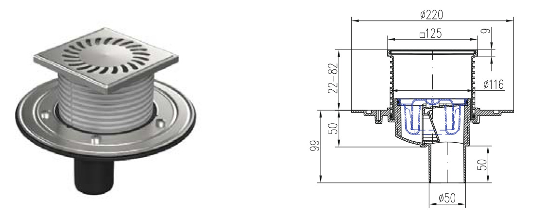 Сливной трап для бани с сухим затвором различается также по диаметру сифона. Наиболее популярными считаются модели D50 и 110, потому что они хорошо пропускают жидкость. Однако при необходимости можно найти и варианты с другими размерами.