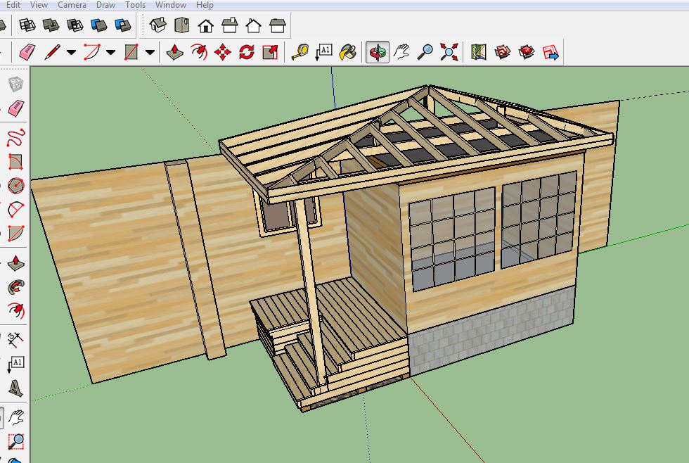 Как вы уже поняли, форма крыши из трех скатов предполагает возможность использования ее для пристроек к основному дому.