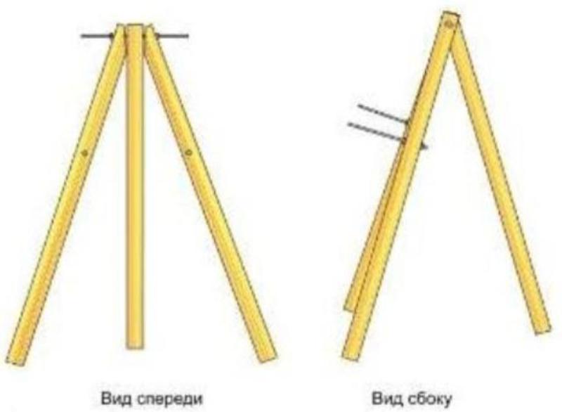 - Поднять собранную конструкцию, раздвинув опоры на расстояние примерно 1,6 м от центра.