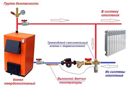 Способы применения термостатических клапанов для твердотопливных котлов