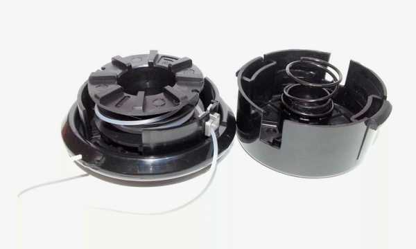 Леска наматывается на специальную полуавтоматическую шпулю (катушку), позволяющую регулировать длину режущей части небольшим нажатием: