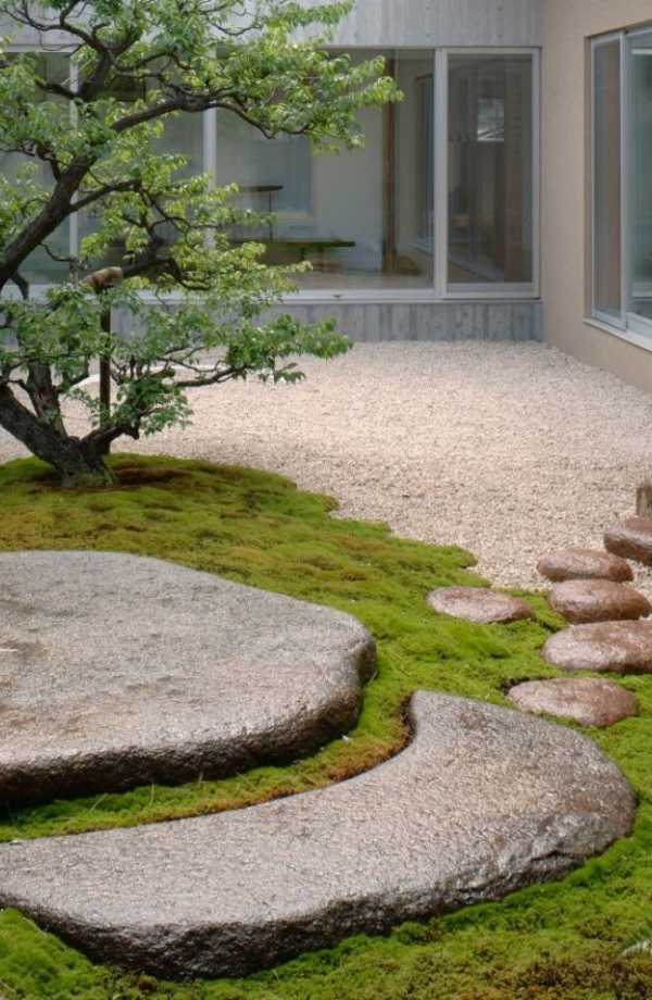 Если площадь достаточно внушительная и позволяет посадить цветы, фруктовые деревья, кустарники — тропинки необходимо планировать в тех местах, по которым чаще всего будут ходить домочадцы. Они могут вести к скамейке, источнику воды, грядкам, малиннику.
