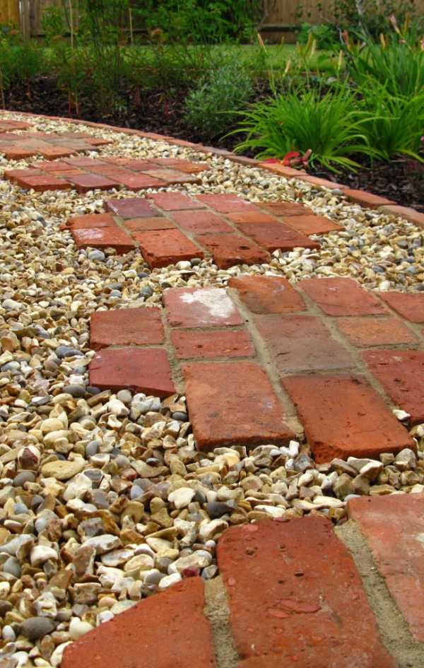 - Кирпич. Это крепкий, надежный материал. Однако следует не забывать, что для дорожки обычный домовой кирпич или облицовочный не подходят. Поскольку первый крошится под действием погодных условий, а второй после снега либо дождя становится скользким. Для тропинок предназначен специальный кирпич. Использование такого материала позволяет создавать различные узоры, рисунки на дорожках. Чтобы воплотить свой замысел, кирпич можно укладывать плашмя, ребром. Существенным недостатком материала является его высокая цена.