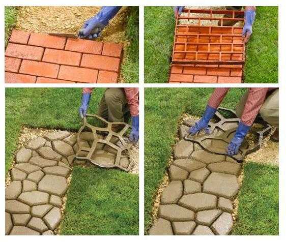 Определив ширину и местоположение тропинки, наметьте участок колышками и веревкой. Форма для тротуарной дорожки обладает, как правило, неровными краями. Но каждая заготовка, словно пазл, отлично примыкает друг к другу.