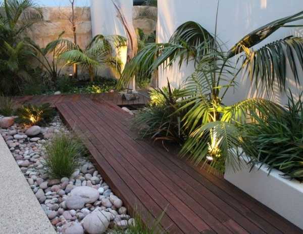 Не менее интересными смотрятся дорожки из натурального дерева. Они могут быть выполнены из спилов бревна или в виде мостков.