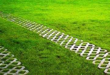 Рис.11. Альтернативой пластиковой, которая довольно гибкая, служит бетонная решетка. Она более прочная, меньше скользит. Может укладываться на предварительно выровненное основание или на песчаную подушку. Ее полости засыпают землей и высаживают траву.