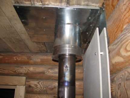 В случае самостоятельного монтажа в самом помещении, внимание стоит обратить на проход дымоходных стальных труб через перекрытия. Есть компании, выпускающие элементы конкретно для этих целей, однако при желании можно их сделать вручную.