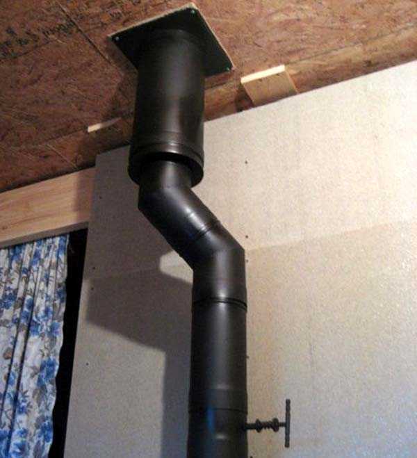 Любые наклоны и горизонтальные участки неизбежно снижают тягу в трубе дымохода. Если сделать его прямым не получается, то изгибы и смещения лучше всего выполнять из нескольких наклонных сегментов под общим углом до 45-ти градусов.