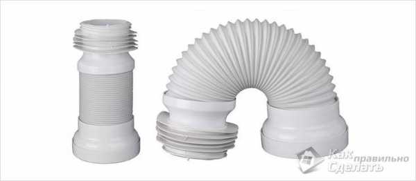 - Если нужна сливная труба для унитаза, то для выполнения этой задачи отлично подойдёт гофра диаметром 110 мм. Благодаря своей гибкости такое изделие будет несложно выставить и подключить к любой модели унитаза.