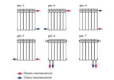 Самым популярным является диагональный вариант, так как именно при такой подаче теплоноситель легче всего проходит по батарее, что увеличивает эффективность отопления. Правда, в этом случае добавить секции не удастся.