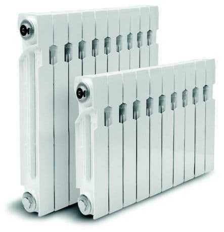 Для высотных строений подходят биметаллические радиаторы, способные выдерживать давление воды от 8 до 40 атмосфер. Они обладают всеми достоинствами предыдущих аналогов и еще плюс надежностью. Естественно, что стоимость такого отопительного оборудование несколько выше, чем металлических и алюминиевых радиаторов.