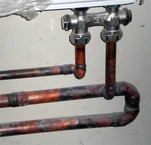 В последнее время иногда можно слышать мнение, что медные трубы не подходят для установки в отопительных системах с алюминиевыми радиаторами. Это не более, чем заблуждение, распространяемое или коммерсантами, продвигающими полимерные материалы, или монтажными организациями, персонал которых не умеет работать с медью. Ни одного регулирующего документа, запрещающего устанавливать медные трубы в центральных отопительных системах, не существует. Разговоры об электрохимической коррозии, возникающей в паре медь-алюминий, тоже являются очень сильно притянутой за уши теорией, так как гальванической пары не возникает по одной простой причине — радиатор от трубы всегда отделен арматурой и переходниками, выполняемыми из нейтральных металлов и напрямую подсоединить медную трубу к алюминиевому радиатору просто невозможно. И в результате, применяя медные трубы при монтаже радиаторов, Вы получите только качественные, надежные и красивые трубопроводы.