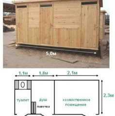 Обычно туалет изготавливают из дерева, но можно использовать асбоцементную плиту (плоский шифер) и даже пенобетонные блоки. Наиболее распространенная форма туалета — «скворечник» — самая рациональная: технологична, имеет большой функциональный объем.