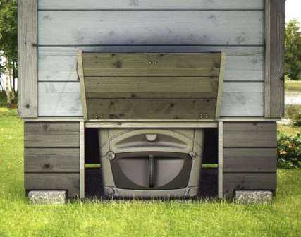 Установка вентиляции необходима для удаления неприятных запахов и для притока свежего воздуха. Наиболее простой способ — установка пластиковой трубы диаметром 10 сантиметров. Ее обычно закрепляют на задней внешней стене конструкции, с учетом того, чтобы ее верхняя часть была выше уровня крыши не менее чем на 20 сантиметров.