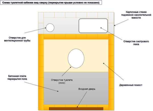 Схема дачного туалета на виде сверху.