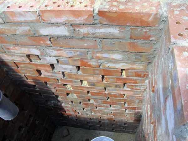 Кирпичная кладка выгребной ямы с зазорами.