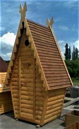 Так как крыша постройки остроконечная, ее высота должна быть выше стандартного туалета.