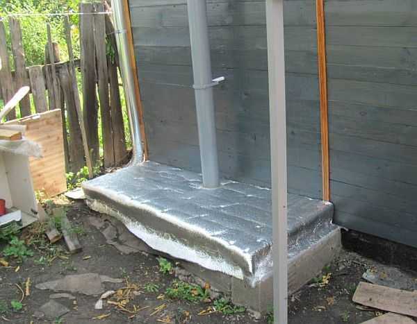 Снаружи делается двухслойная гидроизоляция. Выгреб изолируют замком из утрамбованной глины (слой глины толщиной не меньше 0,5 м ). В качестве приемной воронки можно использовать обычный унитаз (предварительно вырезав сифон) или самодельную воронку из оцинковки.