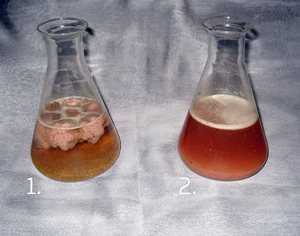 Слева содержимое выгребной ямы до обработки бактериями, справа — после
