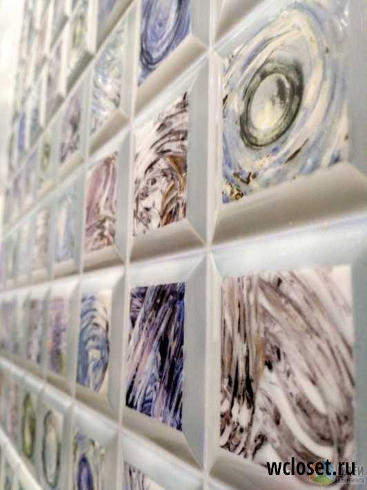 Туалет стандартных размеров и планировки. Использовалась коллекция плитки «Сирио» фирмы Уралкерамика. Базовая плитка та же, что и в ванной.