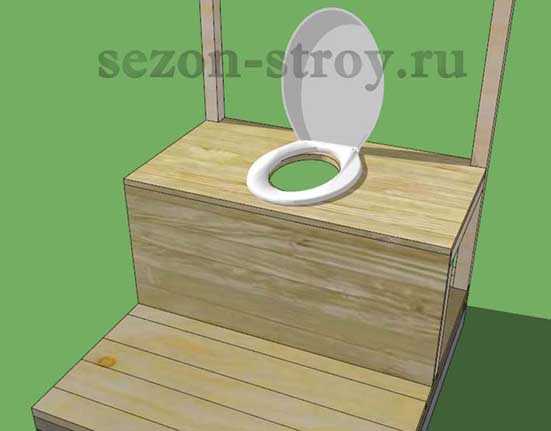 Если туалет организован по типу пудр-клозет, то верхнюю часть сиденья лучше сделать открывающуюся на петлях, чтобы легко можно было вытащить заполненную ёмкость для опорожнения.