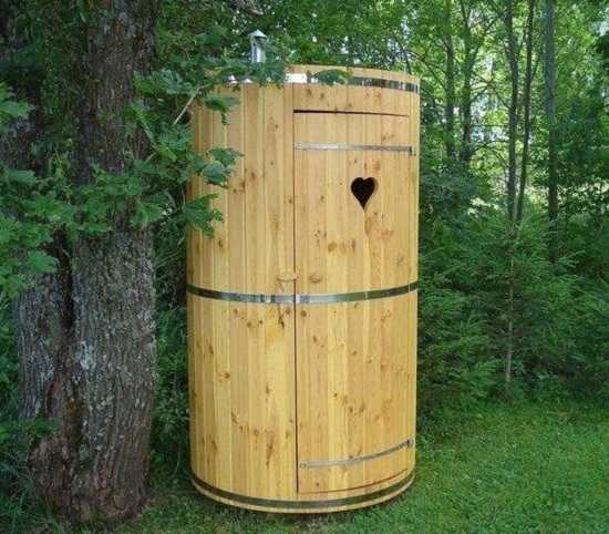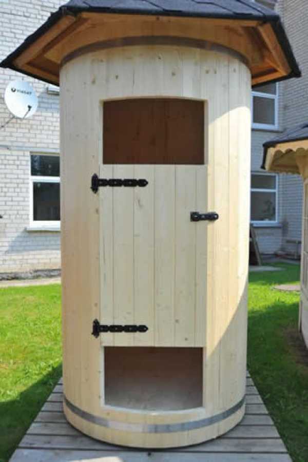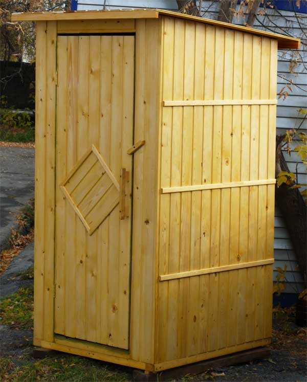 Однако такой клозет будет менее комфортным для пользования.Ведь древесина славится тем, что нормализует воздушный и влажностный обмен в помещениях из нее.