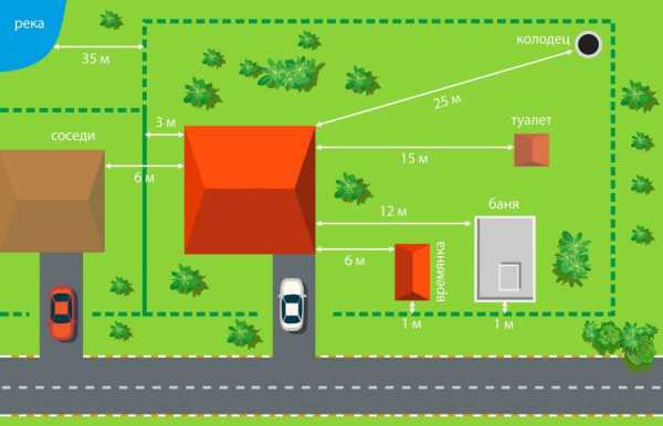 - до ближайшего колодца или скважины с водой должно быть не менее 8 м;