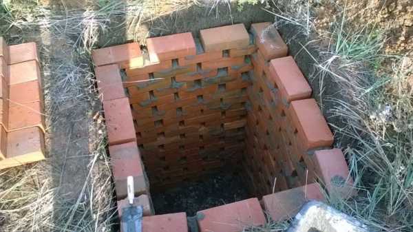 Сначала необходимо выкопать котлован 1×1 м с глубиной 2−3 метра и выложить его стены кирпичом, досками или бетонными кольцами. Все стены необходимо законопатить и заштукатурить. Дно может быть со слоем щебня (или гравия), кирпичной кладкой или бетонной стяжкой.