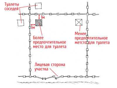 - от границы с соседским участком до туалета нужно оставить расстояние в один метр;