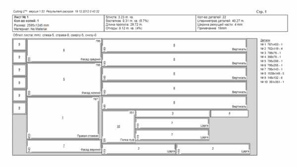 ΠΡΠΎΠ΅ΠΊΡΠΈΡΡΡ ΠΌΠ΅Π±Π΅Π»Ρ Π΄Π»Ρ Π΄ΠΎΡΡΠΈΠΆΠ΅Π½ΠΈΡ Ρ ΠΎΡΠΎΡΠ΅Π³ΠΎ ΡΠΊΠΎΠ½ΠΎΠΌΠΈΡΠ΅ΡΠΊΠΎΠ³ΠΎ ΡΡΡΠ΅ΠΊΡΠ°, Π²Ρ Π΄ΠΎΠ»ΠΆΠ½Ρ ΠΏΡΠΈΠ±Π»ΠΈΠ·ΠΈΡΡΡΡ ΠΊ Ρ ΠΎΡΡ Π±Ρ 80% Π·Π°ΠΏΠΎΠ»Π½Π΅Π½ΠΈΡ Π»ΠΈΡΡΠΎΠ² ΠΏΠ»ΠΈΡΠ½ΠΎΠ³ΠΎ ΠΌΠ°ΡΠ΅ΡΠΈΠ°Π»Π°. ΠΡΠΎΠ΄Π΅ΠΌΠΎΠ½ΡΡΡΠΈΡΡΡ Π½Π° ΠΏΡΠΈΠΌΠ΅ΡΠ΅ ΠΊΠ°ΡΡ ΡΠ°ΡΠΊΡΠΎΡ, ΠΊΠΎΡΠΎΡΡΠ΅ Ρ ΡΠ΄Π΅Π»Π°Π» ΡΠ°ΠΌ Π² ΠΏΡΠΎΠ³ΡΠ°ΠΌΠΌΠ΅ Cutting (ΠΎΠ½ΠΈ ΠΆΠ΅ Π² ΠΏΠΎΡΠ»Π΅Π΄ΡΡΠ²ΠΈΠΈ ΠΈ ΠΈΡΠΏΠΎΠ»ΡΠ·ΠΎΠ²Π°Π»ΠΈΡΡ ΠΏΡΠΈ ΡΠ°ΡΠΊΡΠΎΠ΅):