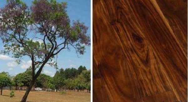 Палисандр — фиалковое дерево, или якаранда привозится из жарких стран Южной Америки и Восточной Индии, ценится как прекрасный материал для изготовления дорогой мебели и предметов. Древесина его очень твердая, плотная, тонковолокнистая и пористая; цвет ее определить трудно из-за различных слагающих его оттенков. В большинстве случаев преобладает коричневый цвет с фиолетовым отливом, испещренным более светлыми прожилками, образующими красивый рисунок. Без тщательной полировки, что достигается с трудом, со временем палисандр темнеет до черноты. Потертый суконкой, издает приятный запах, напоминающий аромат пармских фиалок.