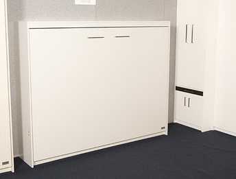 Основная идея создания этой части гарнитура заключается в создании и организации максимально удобного пространства маленьких и однокомнатных квартир. В собранном состоянии конструкция имеет вид обычного платяного шкафа. С приведением в действие подъемно-откидного механизма шкаф трансформируется в удобную кровать.