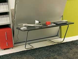 Встроенная в шкаф кровать откидывается в горизонтальном положении.