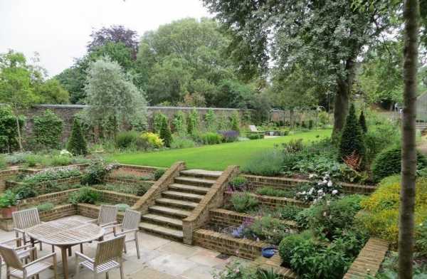 Террасированные площадки дают возможность чередовать грядки, каменные сады, клумбы и альпинарии.