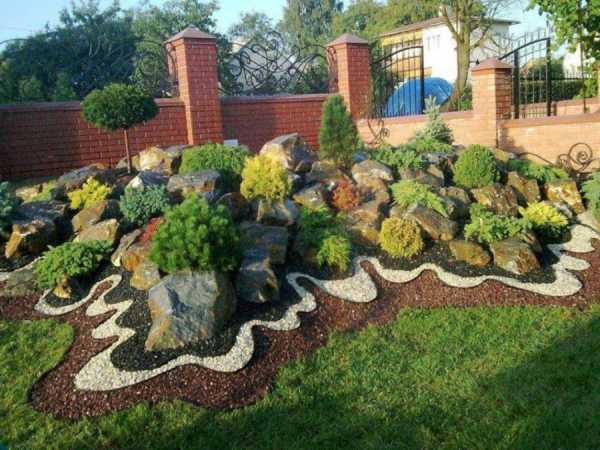 Для рокария отлично подойдет можжевельник, камнеломка и многолетние цветы. Все дорожки, выложенные на участке, стоит делать с узкими бортиками.