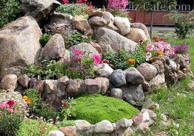 Горы образуют достаточно устойчивый природный ландшафт. Поэтому укрепление такого участка сводится к простому декорированию. Здесь дизайнер может посоветовать планировку согласно естественным изгибам участка. Так как горная порода тяжело поддается обработке.