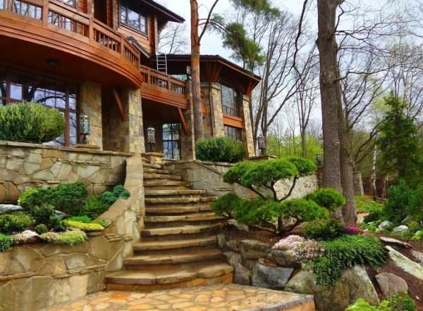 Небольшие неровности укрепляются при помощи ступеней и деревянных настилов. В том случае, если загородный дом находится на берегу реки или иного водоема, его границу придется отсыпать землей. А на склоне высаживать как можно больше деревьев и растений для предотвращения оползней.